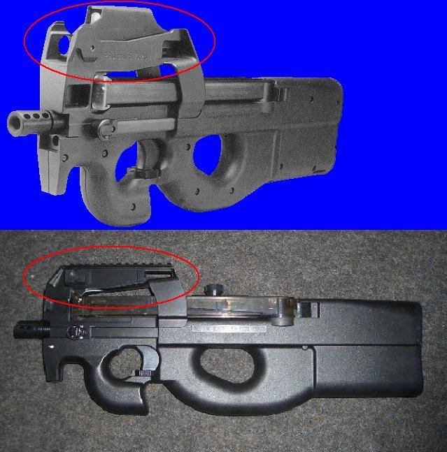 Bild 1. P90 mit integriertem Visier und einer Schiene auf der rechten Seite, wie sie bei Stargate benutzt wird. Problem: wird wegen dem Visier nicht mehr verkauft, also die Augen offen halten nach gebrauchten. Falls Du doch irgendwann ein anderes Visier draufhauen willst, kannst Du das Orginalvisier abschrauben und folgende Sachen als "Adapter" dazwischen schrauben (Bild 3 und 4). Wenn Du an der linken Seite noch was anbringen willst kannst Du die selbe Schiene wie auf der rechten Seite links dran montieren. Oder, Du nimmst gleich das Teil aus Bild 4 welches alle 3 Schienen ersetzt.