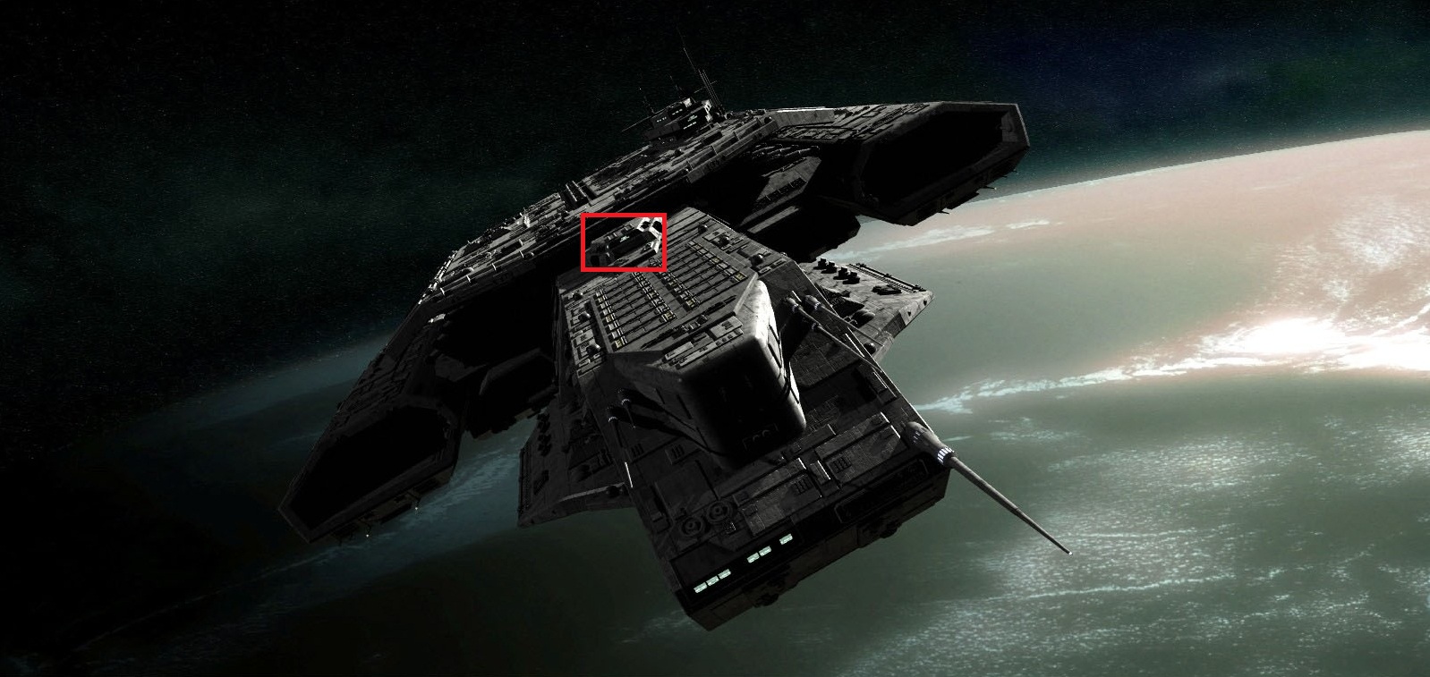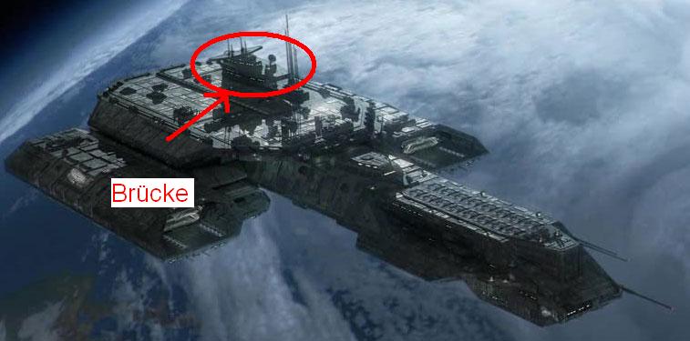 Ich habe dieses schöne Bild von der Daedalus gefunden und frage mich seitdem wo die Brücke ist bei dem Schiff??