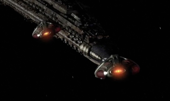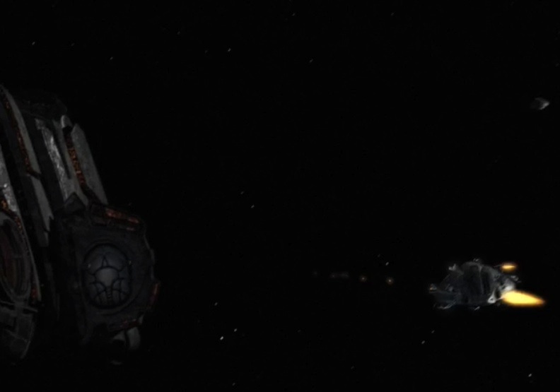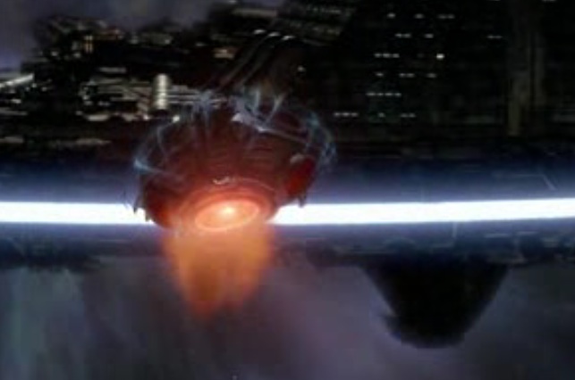 Und dann findet man im Trailer auch noch einen kurzen Moment in dem man einmal eins der Angreifer-Schiffe von vorne sieht (und wo es in keinster Weise einem Wraith-Dart ähnelt) und wo am äußerst linken Bildrand etwas zu sehen ist bei dem es sich um das Basisschiff handeln könnte: