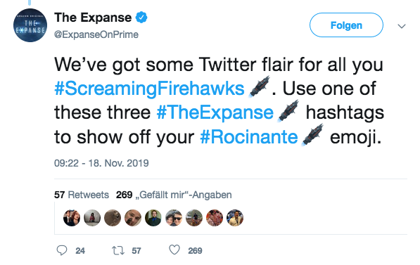 «The Expanse» hat von Twitter ein eigenes Emoji spendiert bekommen.