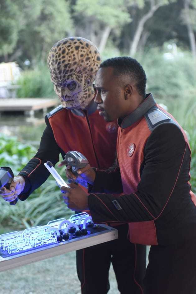 Zurück auf der Orville wird die Situation mit dem Virus immer dramatischer. Das Schiff verliert die Steuerung und droht in den Stern gezogen zu werden. Im letzten Moment kann Isaac im Simulator das Virus neutralisieren. Die Szene, wie er dabei von einem Rudel halbnackter Moclaner begrapscht wird, ist ein Highlight der Folge