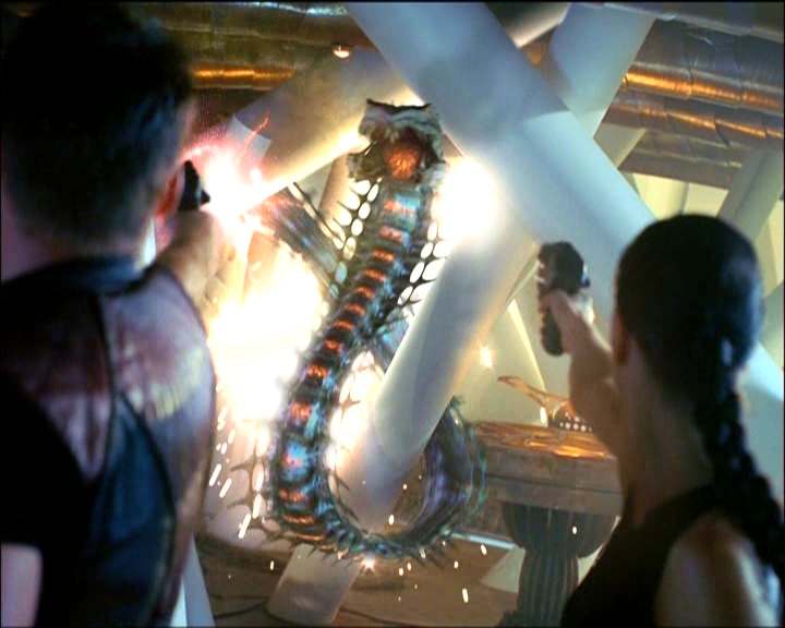Crichton und die anderen haben es aber nicht nur mit den Saboteuren zu tun, auch ein seltsames, schlangenartiges Wesen, das in Wurmlöchern lebt, treibt auf Moya sein Unwesen.