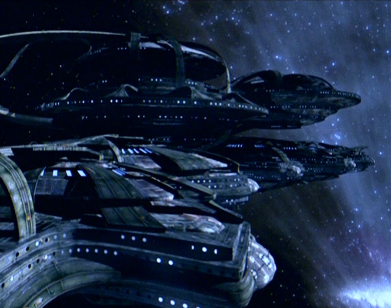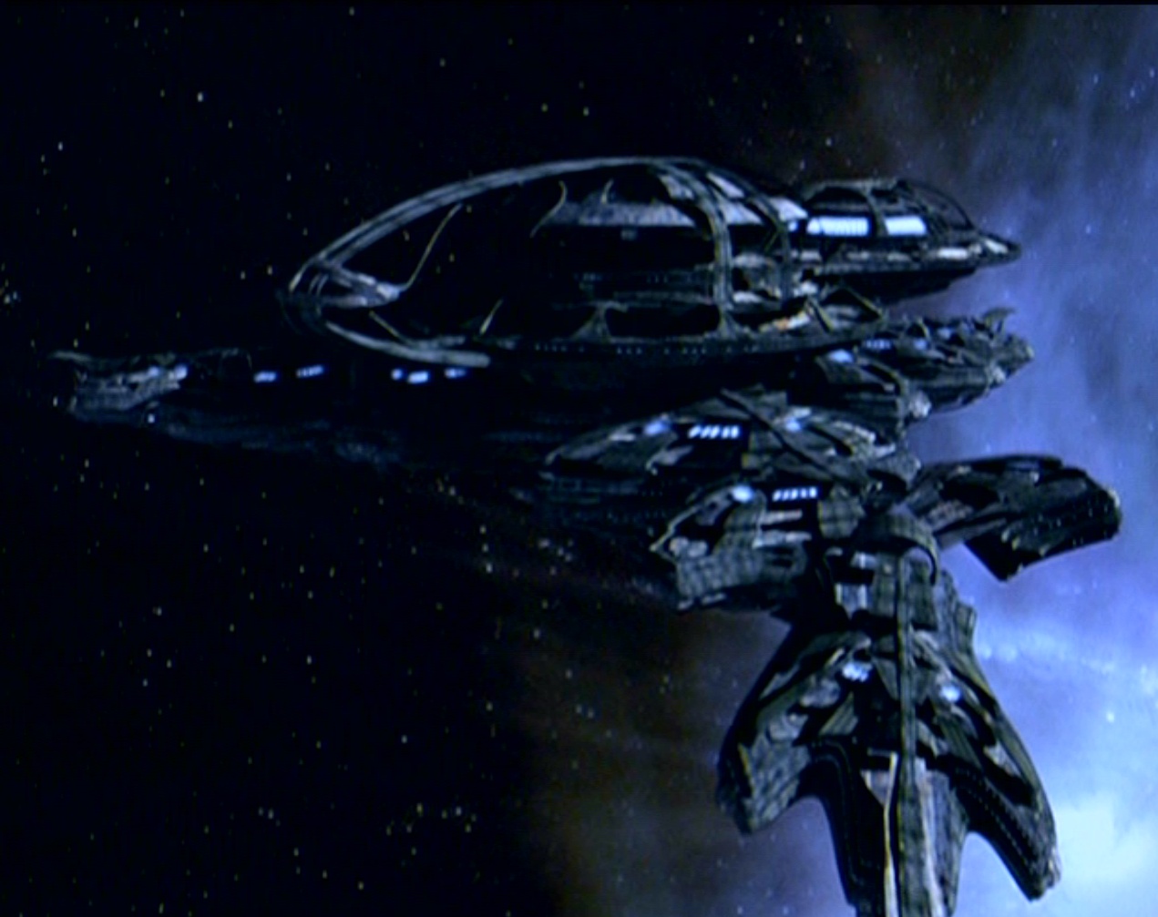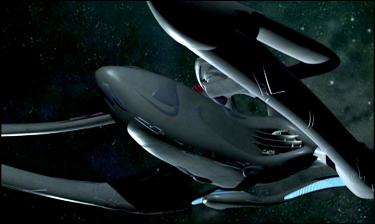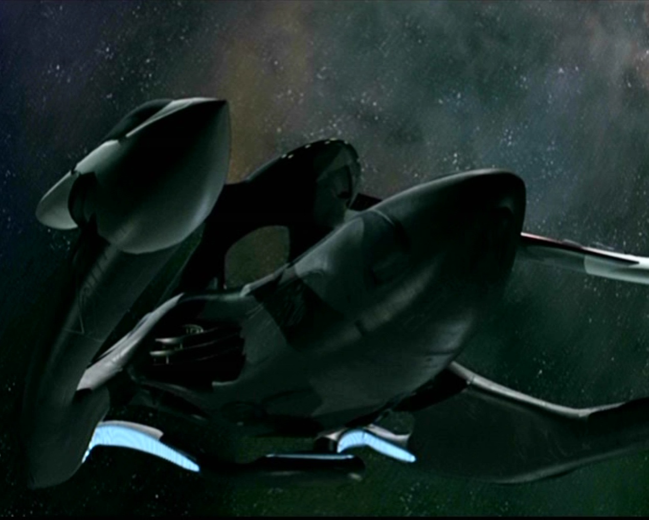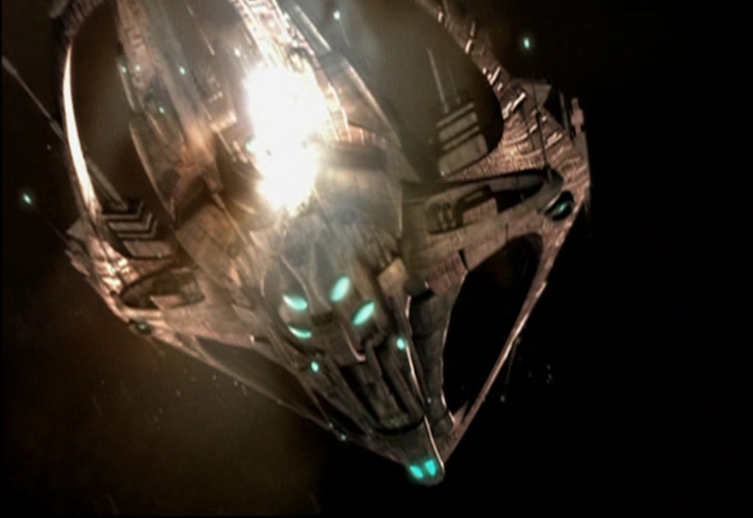 Man sieht kein Licht und die dunkle, matte Panzerung. Da sieht sie wirklich aus wie ein Kriegsschiff, unverletzbar. 1. und 2. Staffel sieht auch gut aus, vor allem die grünen Raketen. Die Andromeda aus der 4. Staffel finde ich schrecklich, vor allem wegen der beiden roten und grünen Lichter auf dem Dach