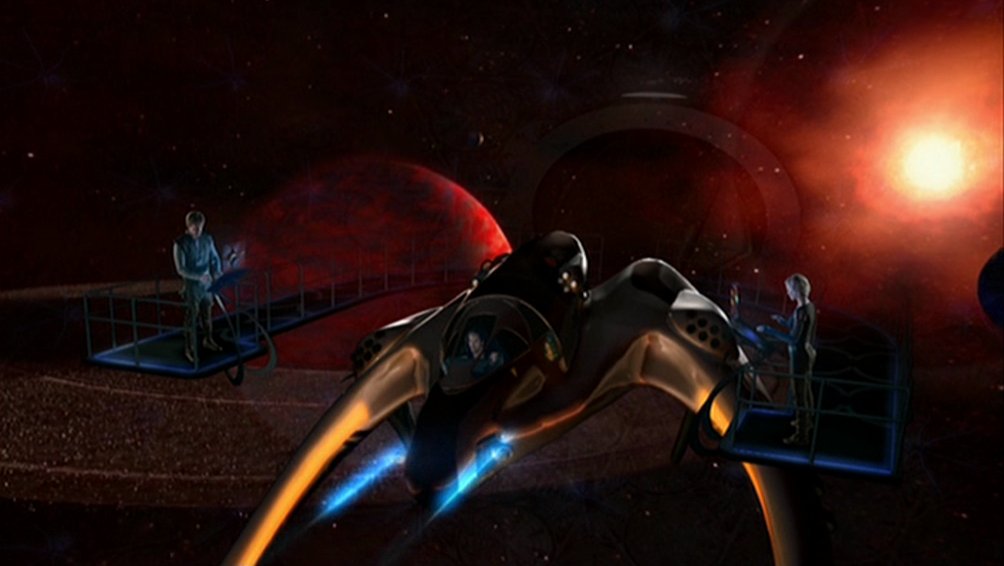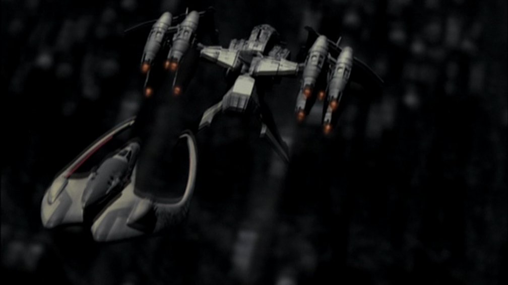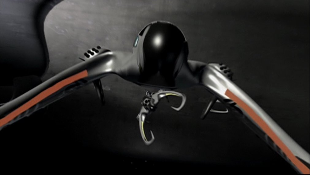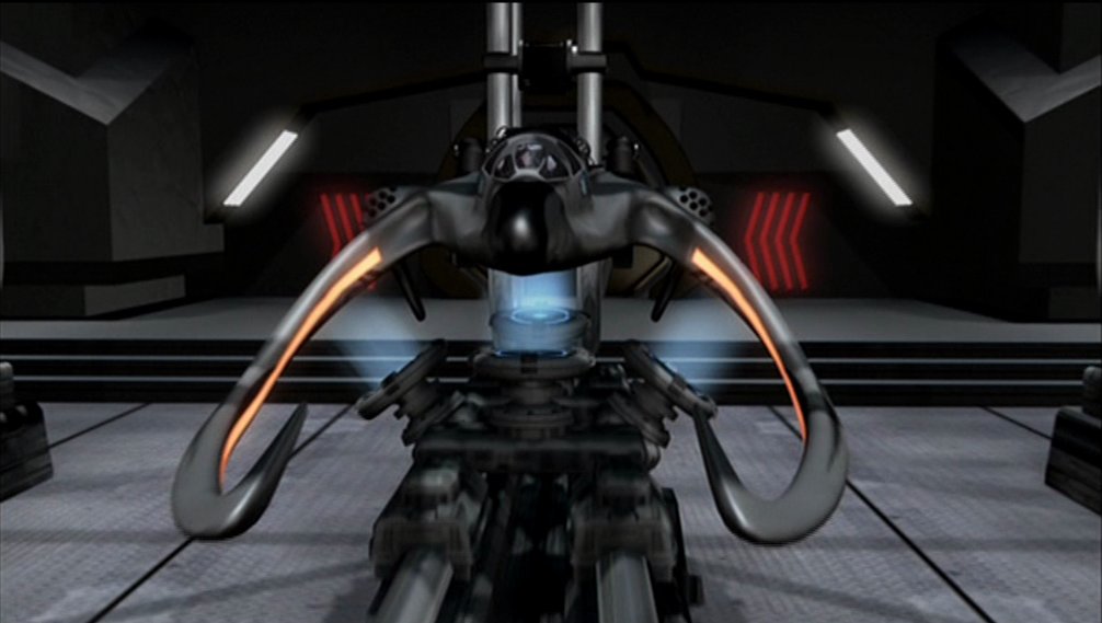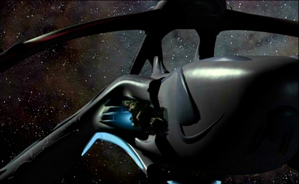 Ein nietscheanischer Fighter wir von den Drohnen der Andromeda geborgen: