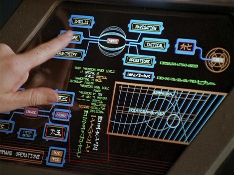 Das sieht sogar aus, als hätten die mindestens 3 Sprachen auf dem Display ^.^ denn die Zeichenkette unter dem Wort "Operations" (mitte oben), ist weder so ein Kanji(-verwandeter) noch lateinische Schrift, sondern noch was anderes. Die beiden Zeichen ganz rechts oben,d ie zu der kugel da führen, sehen auch aus wie chinesisch/japanisch (oder verwandt)Jede Geschichte hat vier Seiten: Deine Seite, Ihre Seite, die Wahrheit und das, was wirklich geschehen ist.