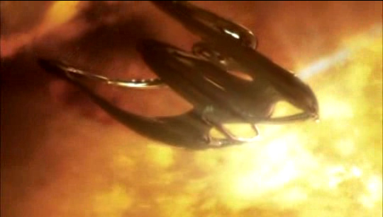 Also das Schiff welches ich meinte ist in Folge 3.07 "The Leper's Kiss" zu sehen und wurde zu einem Gefängnis umfunktioniert. Die Schiffsklasse wird dort nicht genannt, dafür der Name. Leider konnte ich ihn akustisch nicht verstehen - klang wie "Khanduv" oder so ähnlich.